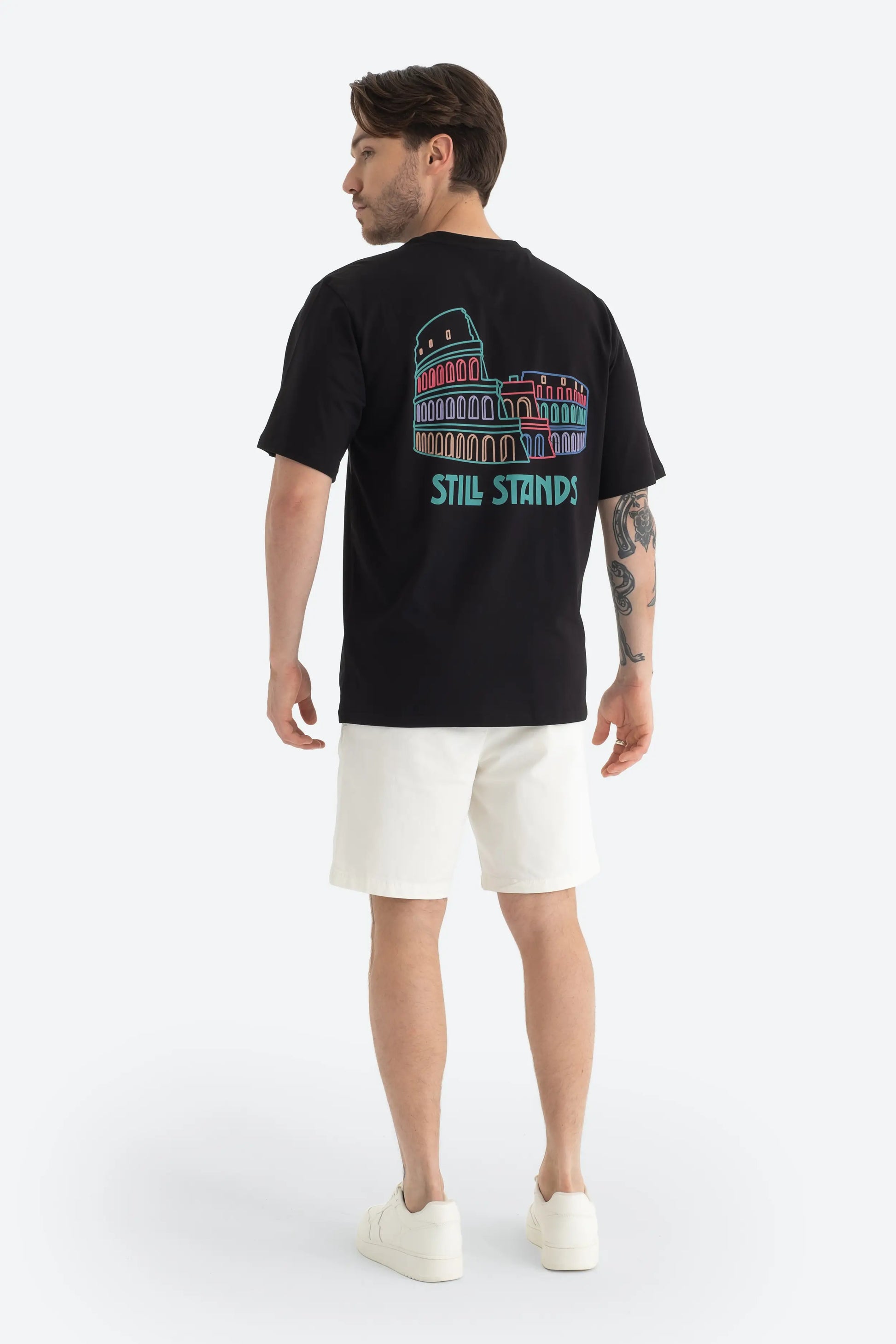 Stelias, bu ikonik yapının efsanevi duruşundan ilham aldı.Tişörtün ortasında yer alan büyük Kolezyum çizimi, tarihin derinliklerinden günümüze uzanan bir hikayeyi anlatır.